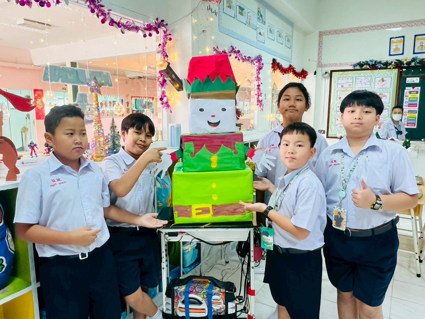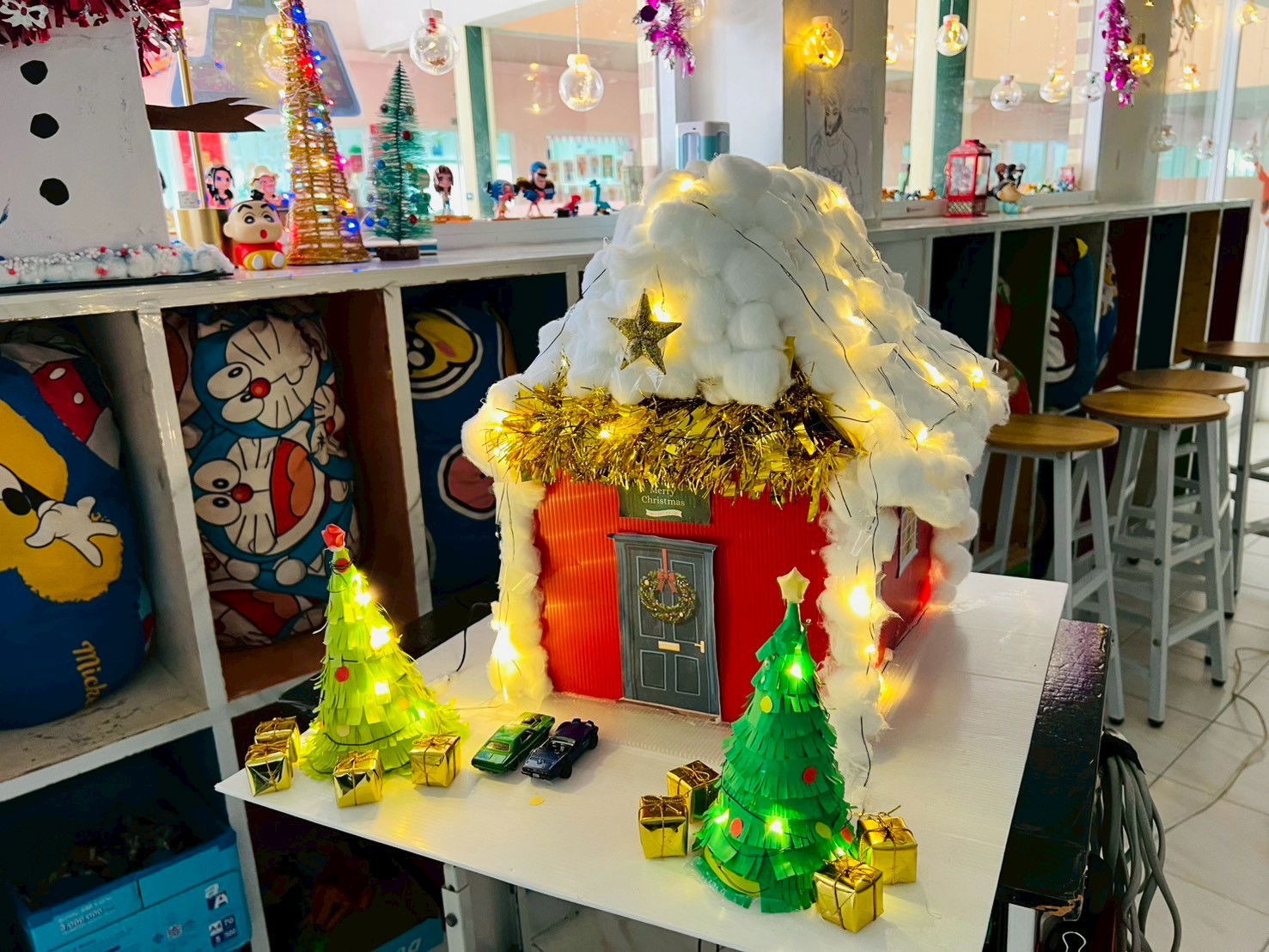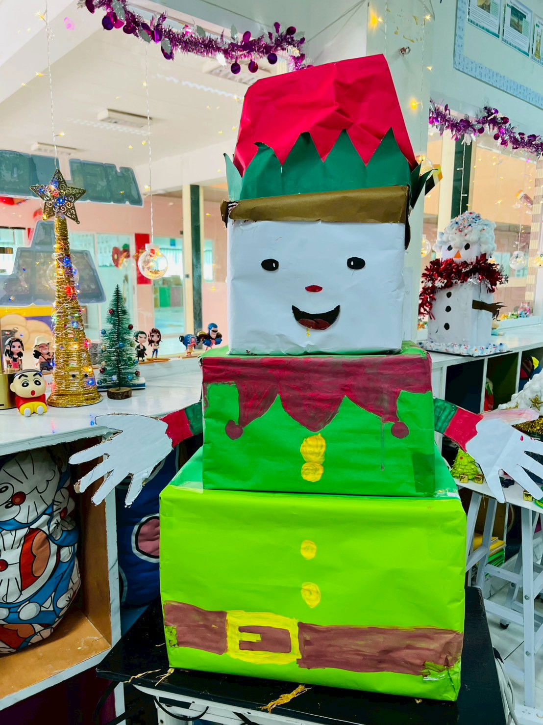 Throughout the project, each group carefully planned their design, collected and cleaned recycled materials, and built their decorations with great effort and responsibility. Students showed excellent cooperation as they cut, shaped, assembled, and decorated their lanterns and Christmas pieces using traditional Christmas colors such as red, green, gold, and silver 🎄✨. Safety, neatness, and stability were also strongly emphasized in every project.