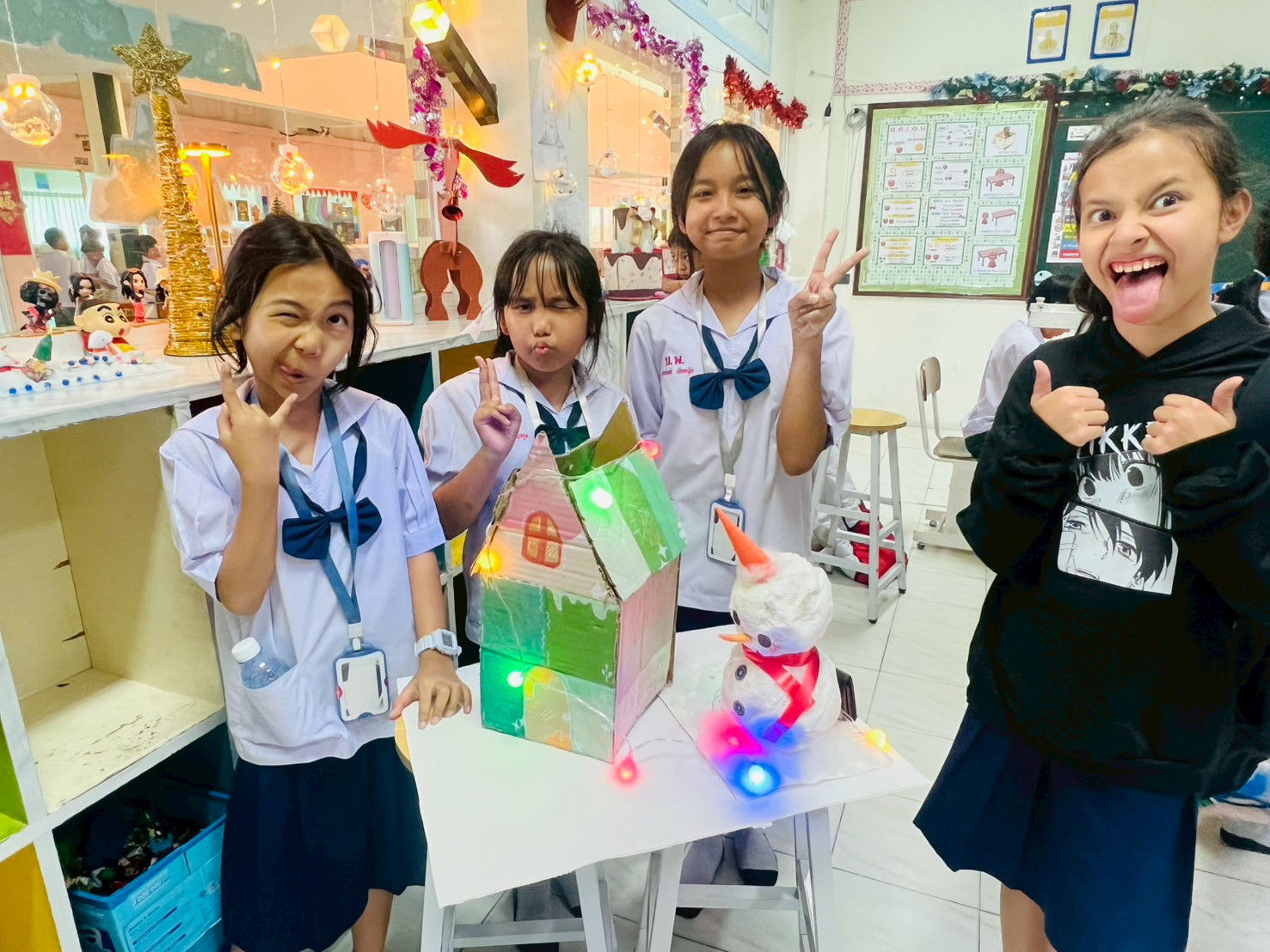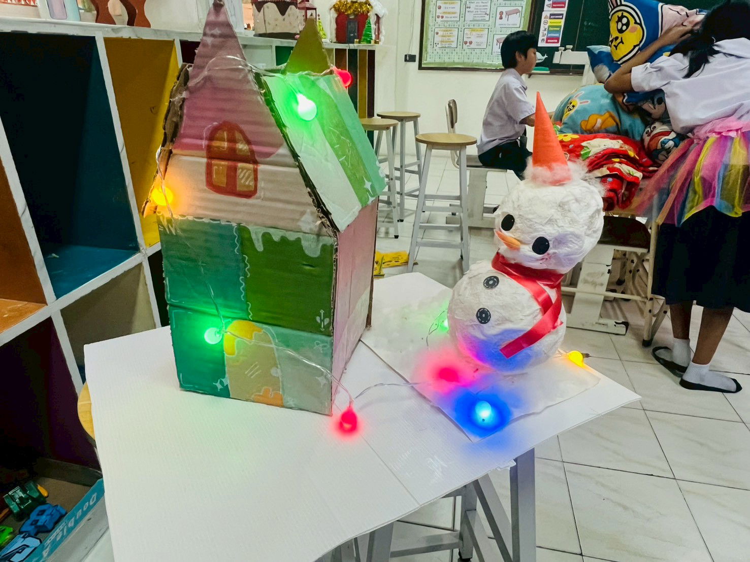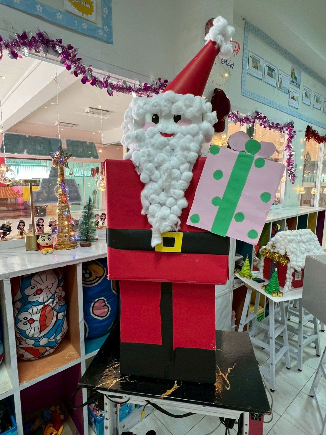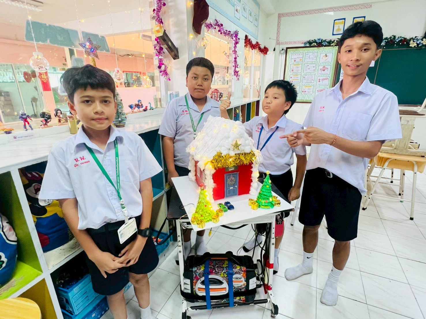 Throughout the project, each group carefully planned their design, collected and cleaned recycled materials, and built their decorations with great effort and responsibility. Students showed excellent cooperation as they cut, shaped, assembled, and decorated their lanterns and Christmas pieces using traditional Christmas colors such as red, green, gold, and silver 🎄✨. Safety, neatness, and stability were also strongly emphasized in every project.