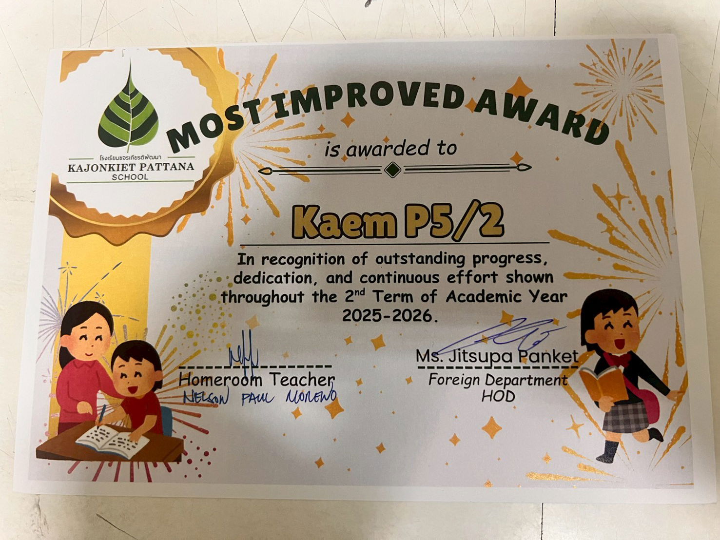 Term 2 Most Improved Students Award