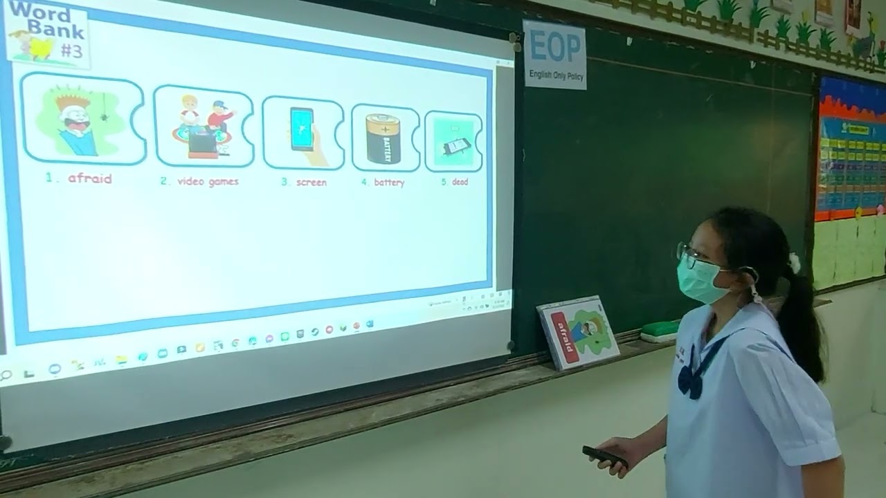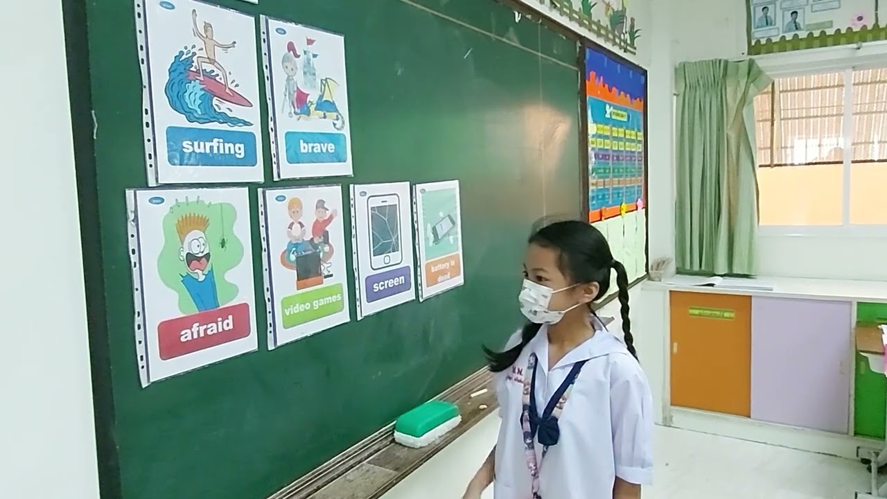 P5/2: Their English started with the introduction of Word Bank #4. I discussed the words to them and talked about them. We also translated the words for them to easily understand the words. After that, they practiced reading the words. It was led by Nammon.