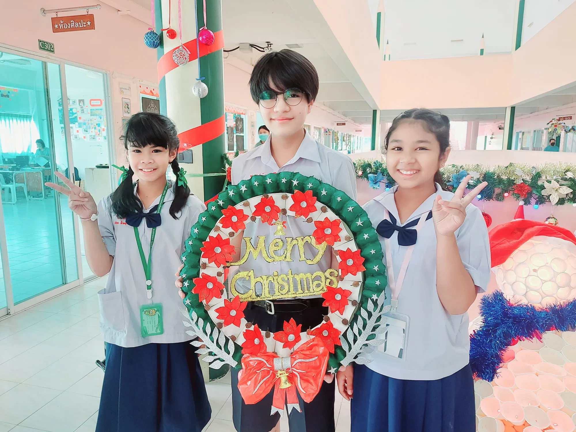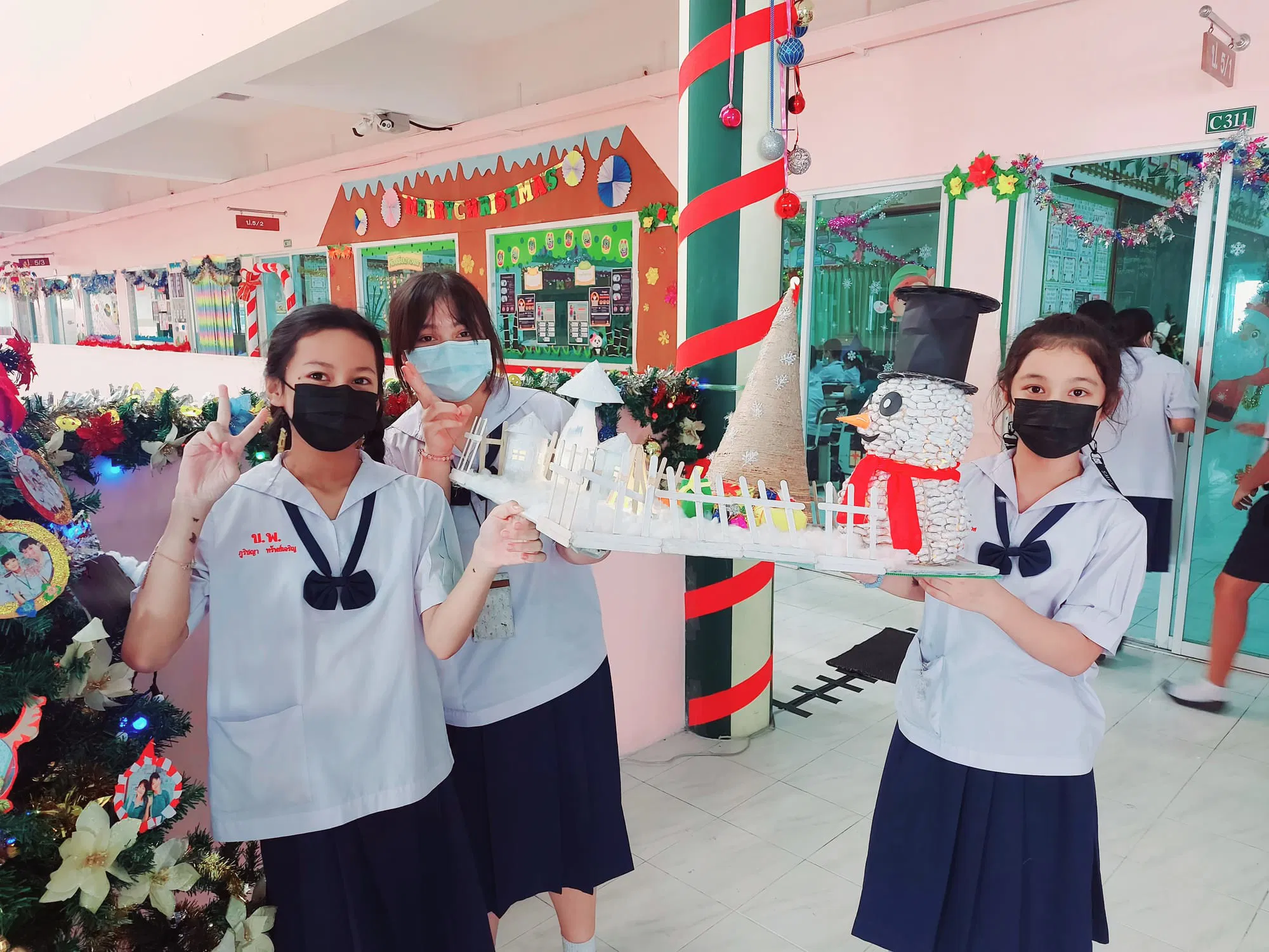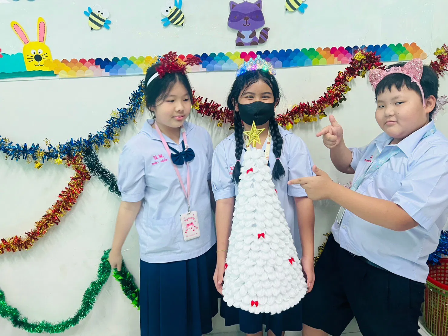 ให้นักเรียนประดิษฐ์โคมไฟหรือของตกแต่งวันคริสต์มาส โดยใช้ วัสดุรีไซเคิล
