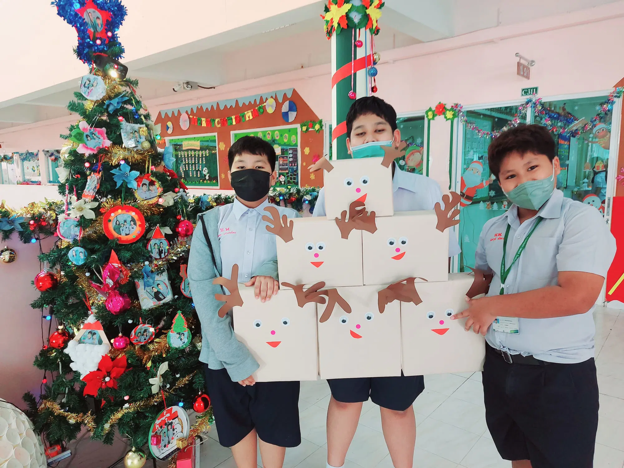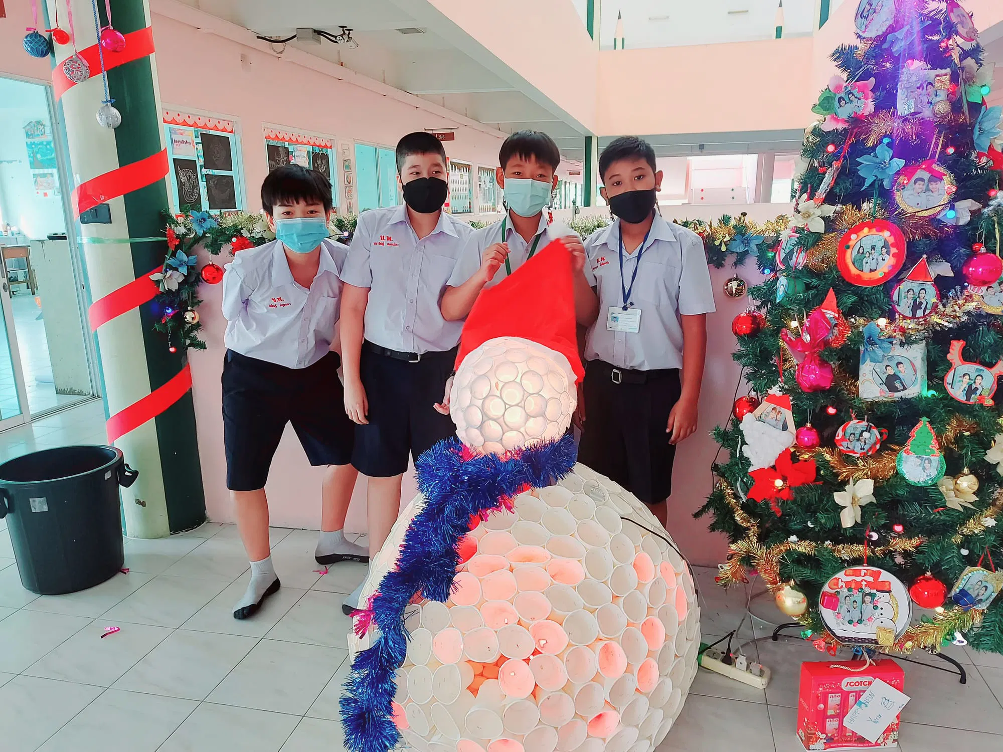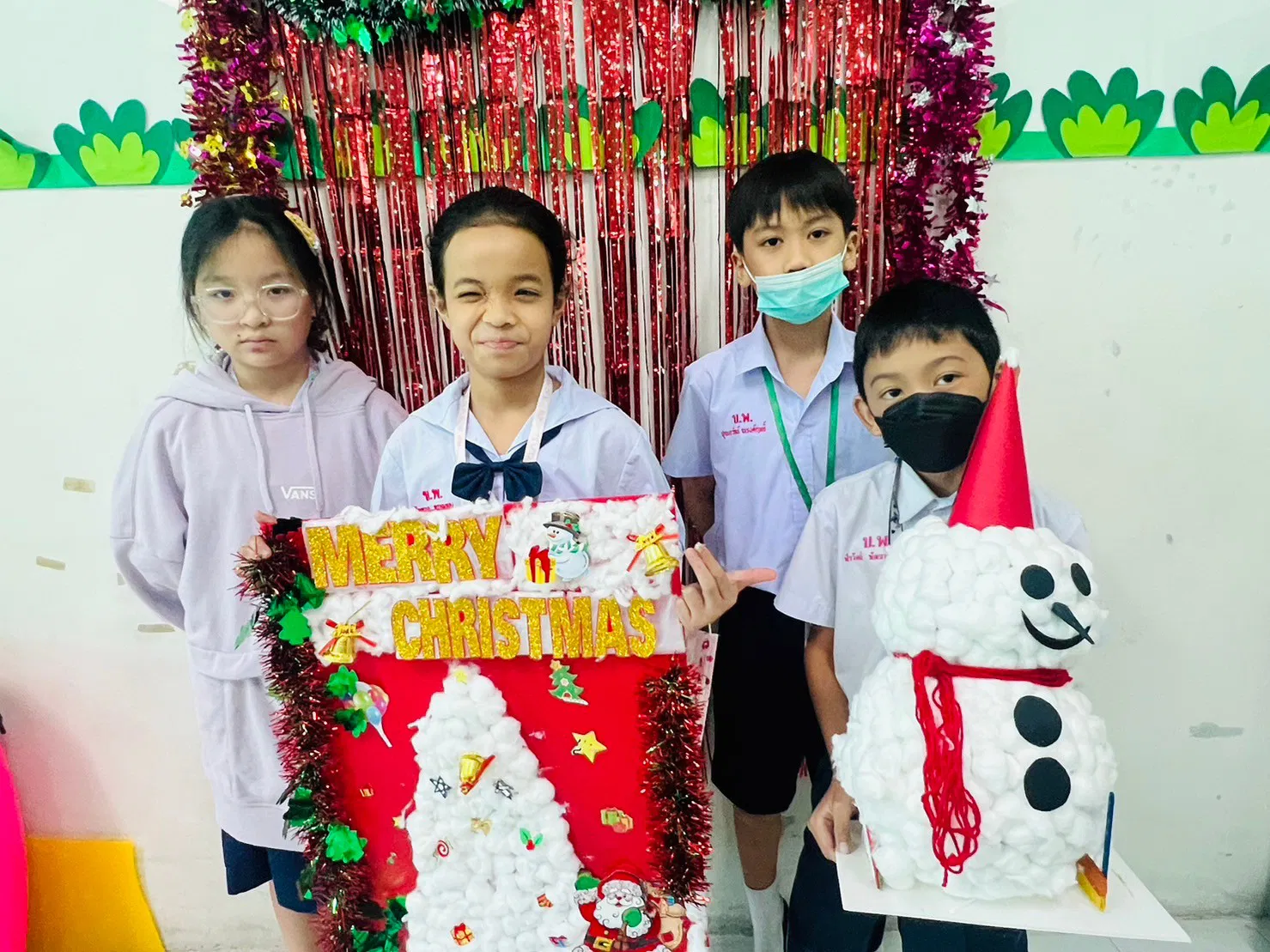 ให้นักเรียนประดิษฐ์โคมไฟหรือของตกแต่งวันคริสต์มาส โดยใช้ วัสดุรีไซเคิล